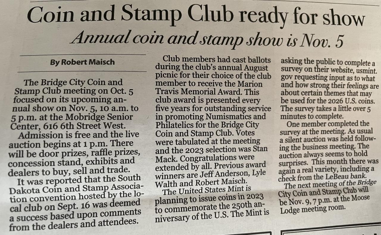 Event Title: The Annual Mobridge Coin and Stamp Show